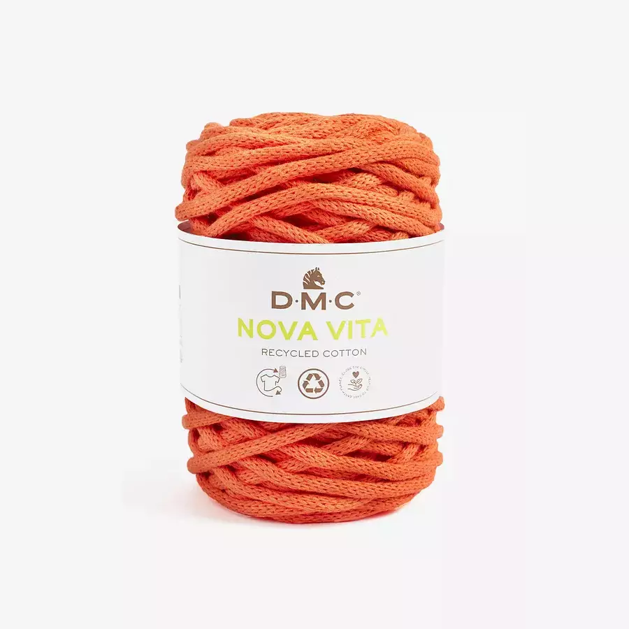 Nova Vita 12 er et resirkulert bomullsgarn, ideelt for å sy ditt eget hjemmetilbehør. Bruk dette 4 mm rørformede garnet til å strikke, hekle eller makramékurver, plantepotter, puter, lampeskjermer og mer!
