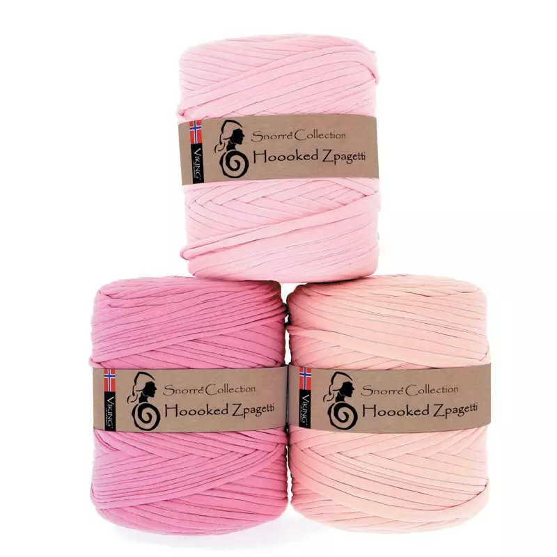 Zpagetti er det originale jersey t-skjortegarnet. Tekstilavfall fra europeiske motefabrikker kjøpes av Hoooked og velges ut,