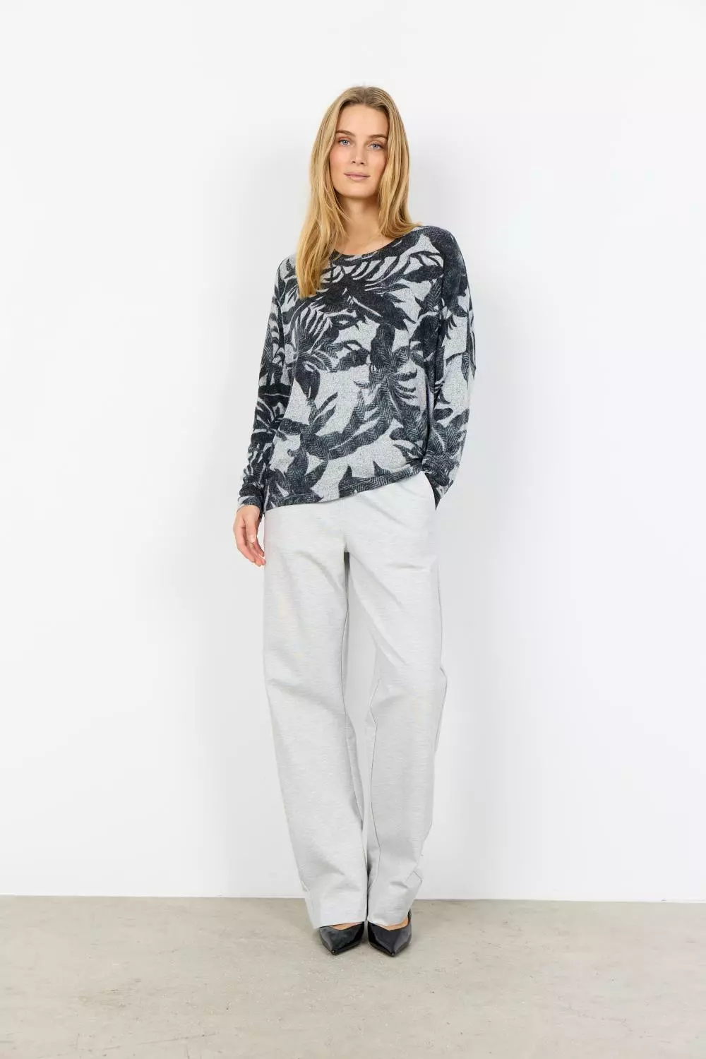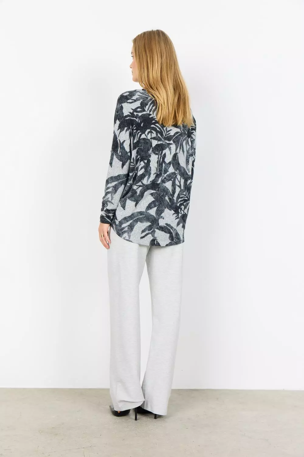 Flott topp med lange ermer med mønster av blader.